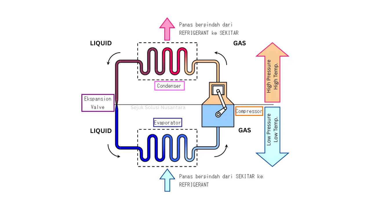 Di bab selanjutnya, akan dijelaskan lebih rinci mengenai masing-masing komponen utama seperti kompresor, kondensor, evaporator, dan katup ekspansi beserta cara kerjanya.