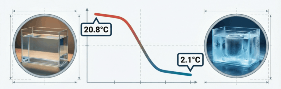 - Saat butana menguap, ia menyerap panas dari air di sekitarnya sehingga suhu air turun drastis, dari sekitar 20.8°C menjadi 2.1°C.