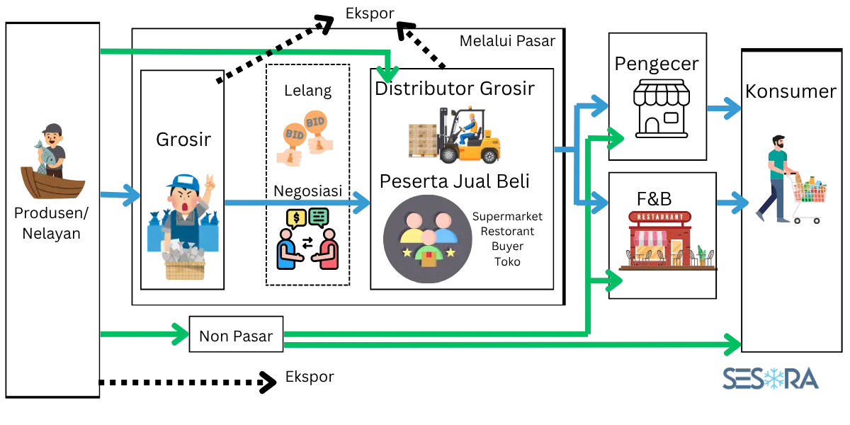 Di Indonesia, sistem distribusi hasil laut masih cenderung berlapis dan tidak seragam antar daerah.