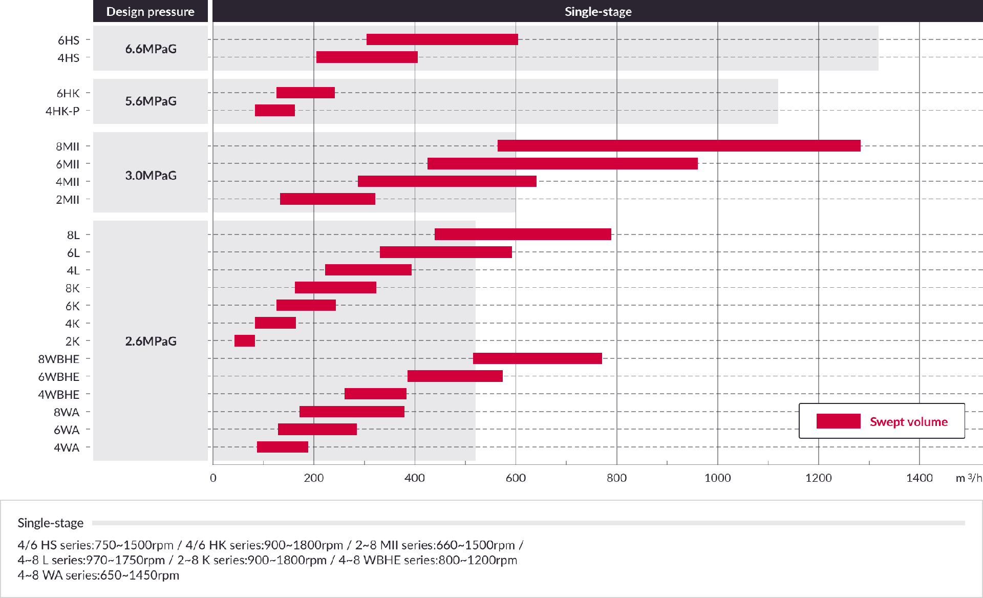 | Seri | Bore × Stroke (mm) | Tekanan Kerja (MPaG) | RPM | Keterangan |